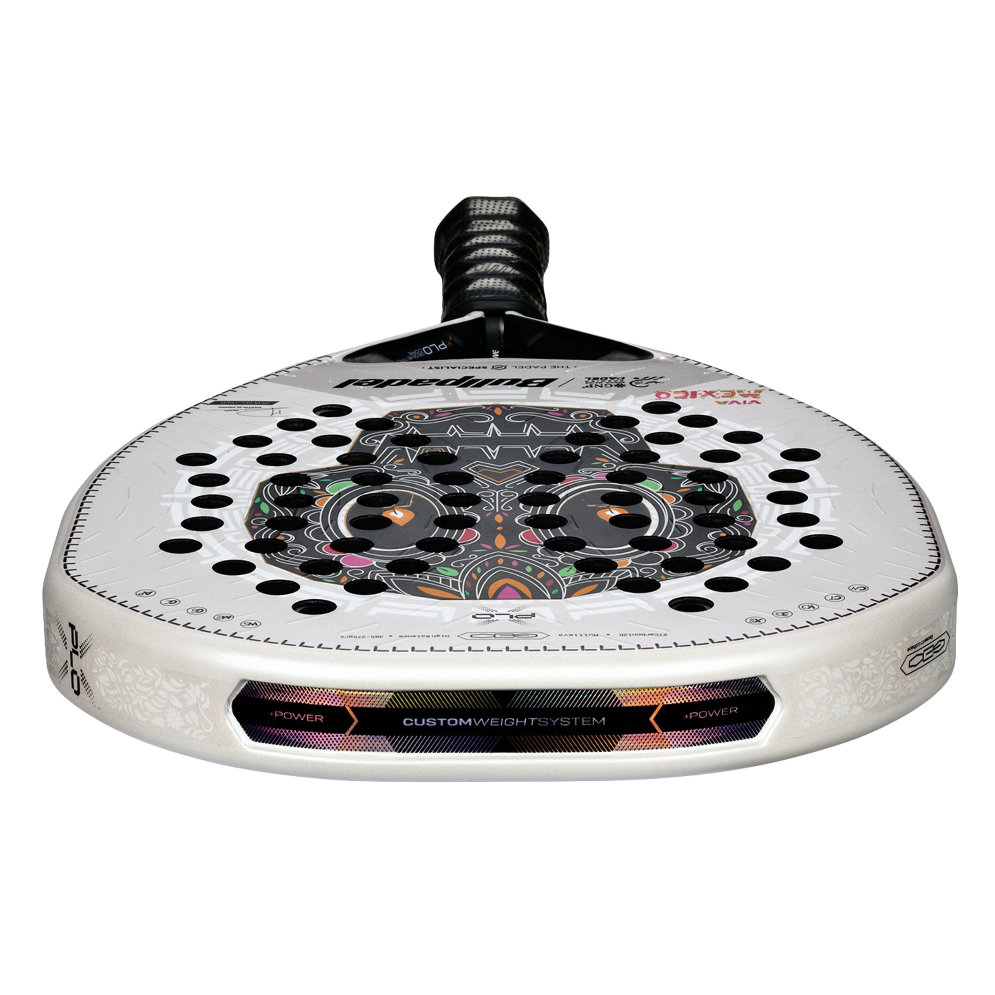 Honour Mexican tradition with the Bullpadel Xplo MX 25, the exclusive LTD Collection geometric-shaped Padel Racket celebrating Day of the Dead artistry. Made with revolutionary Geometric Core and Hexature technologies featuring striking Mexican skull design on pearly white base with Martín Di Nenno's signature, this limited edition weapon delivers explosive power and cultural pride for players demanding maximum dominance in their Padel game.