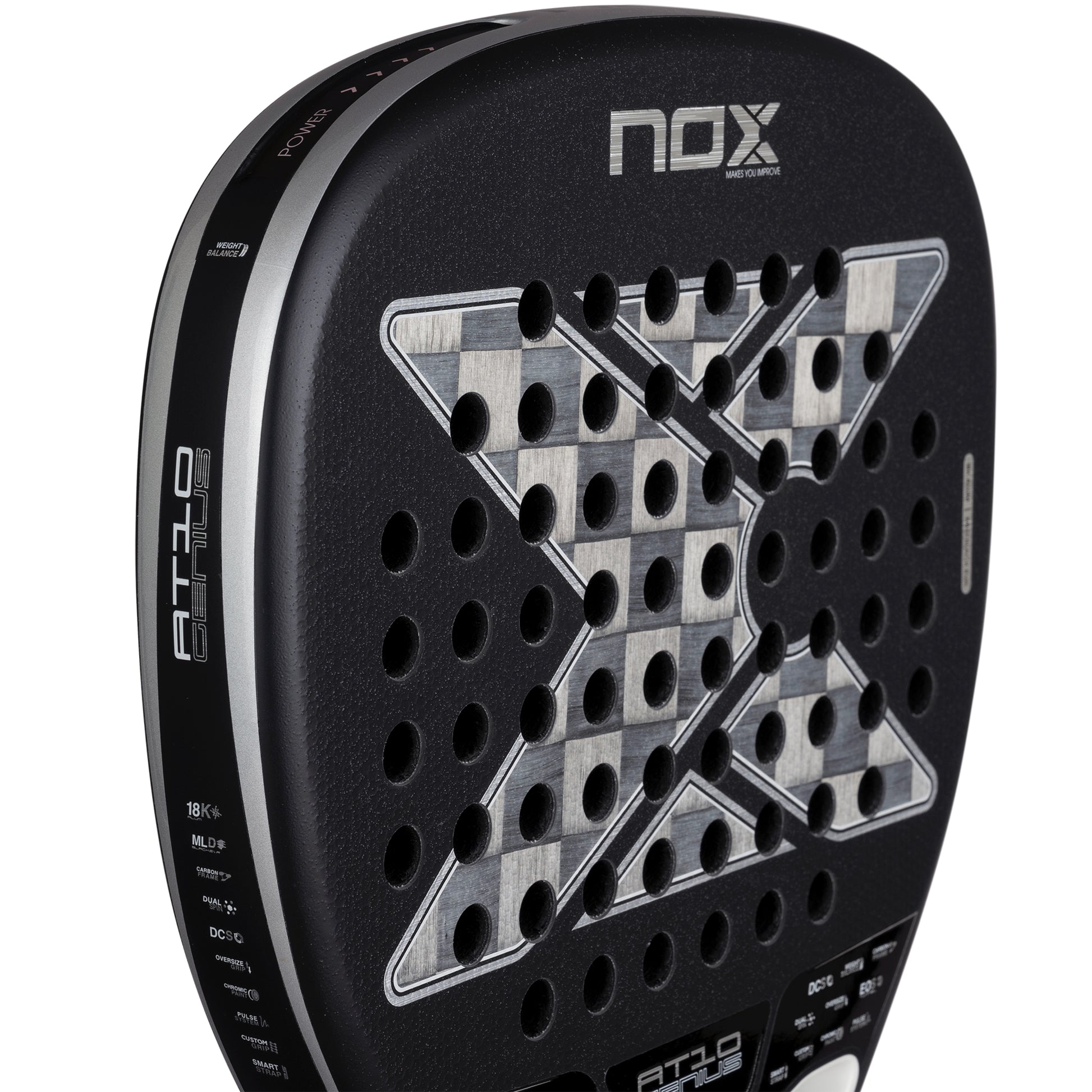 Introducing the all new AT10 Genius Attack 18K Alum 2026, made by NOX for aggressive players seeking maximum power in their attacking shots whilst maintaining exceptional precision. With its diamond shape, high balance and extended grip, this high performance Padel Racket is engineered to dominate the offensive game with the revolutionary 18K Alum carbon face and customisable Weight Balance system.